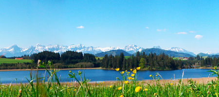 Zwischen den Orten Roßhaupten und Lechbruck in Sameister, finden Sie unsere Ferienwohnungen. Umgeben von saftig-grünen Wiesen und mit phantastischem Blick auf die Zugspitz auf die Allgäuer und Tiroler Alpen.